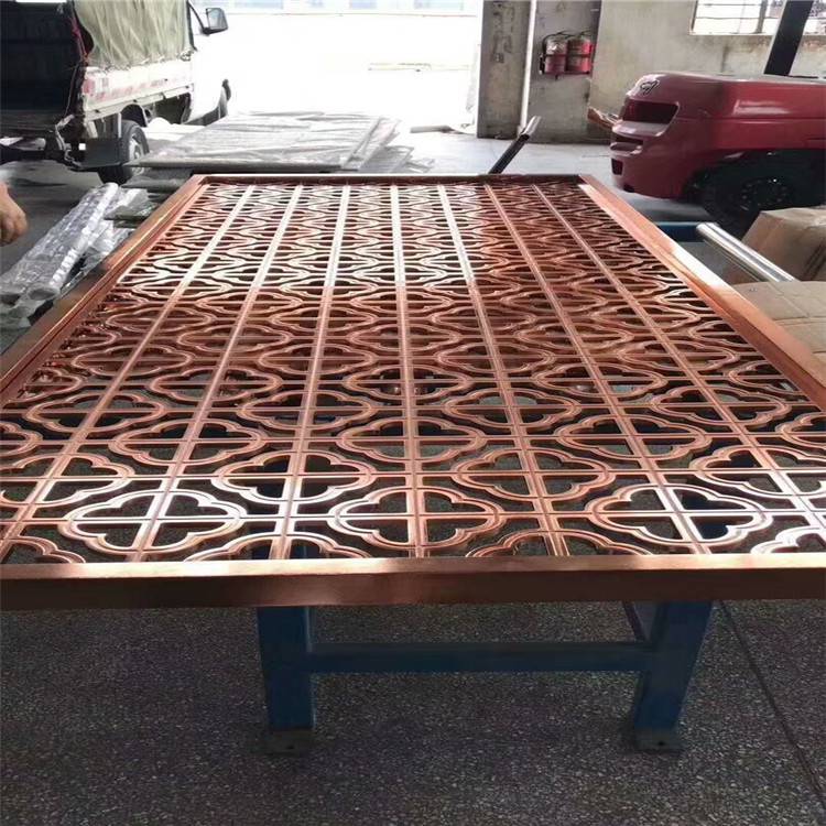 铝花格窗 木纹铝窗花,方管由10mm,15mm,20mm,25mm,至200mm,穿透性焊接的格栅厚度要2.0mm以上,使材料在焊接过程后不会变形,焊接处经人工打磨好后和没有焊接的地方同样平整,表面做好颜色看不出焊接处的痕迹,效果和古建筑一样空间中的整体设计风格,带有浓浓的中国风。