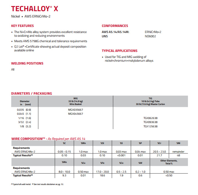 江西美国泰克罗伊镍基合金焊丝