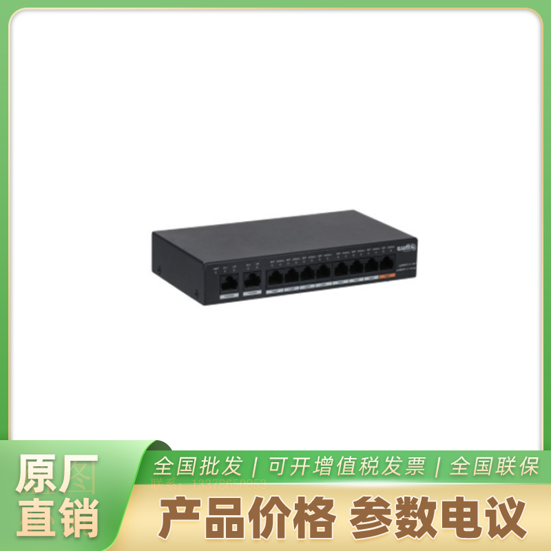 技术参数:参数名称 参数值硬件参数电源是否标配 是PoE 支持接入电口 8个电口速率 1Gbps业务端口/槽位描述 8个10/100/1000Mbps Base-T PoE电口2个10/100/1000Mbps Base-T 电口供电方式 DC48~DC57V工作温度 -10℃~+55℃工作湿度 10%~90%储存温度 -20℃~+70℃储存湿度 10%~90%功耗 空载功耗:5W满载功耗:96W性能参数层级 二层是否管理型 否推荐视频路数 8路200万像素交换容量 20Gbps包转发率 14.88Mpps包缓存大小 1.5MbitMAC表大小 4K