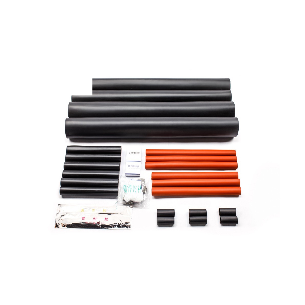 热缩电力电缆终端头中间接头系列产品集防水应力控制绝缘于一体具有良好的电气性能和机械性能能在各种恶劣的环境条件下长期使用具有重量轻安装方便等优点广泛的应用电力石油化工冶金铁路港口和建筑领域 产品特点 不加垫管即可收缩 绝缘管为黄绿红蓝黑直接分相 密封性能好防潮绝缘性能可靠 收缩快不开裂