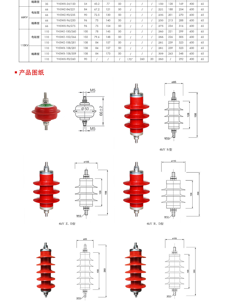 中性点型避雷器,YH1.5W-8/19;YH1.5W-10.5/23; YH1.5W-12/26; YH1.5W-13.7/29.2; YH1.5W-15.2/31.7