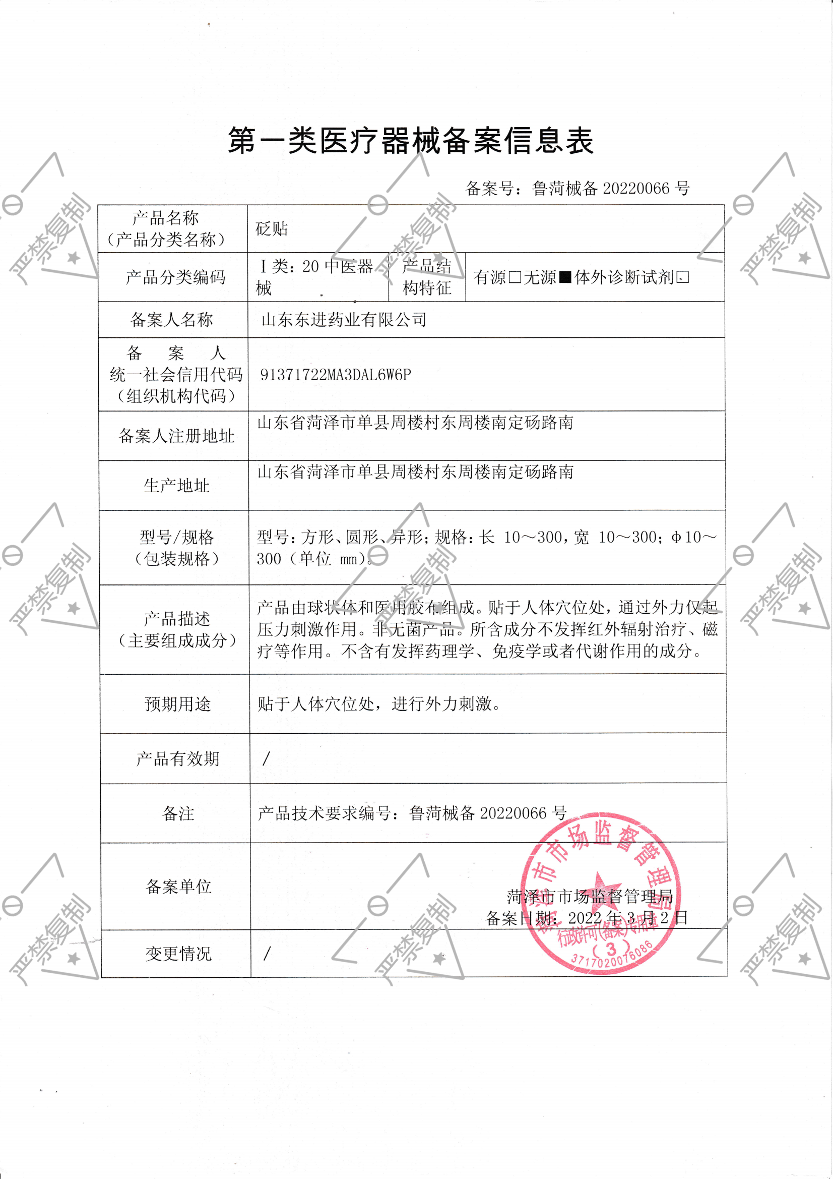 鲁菏械备20220066号 |