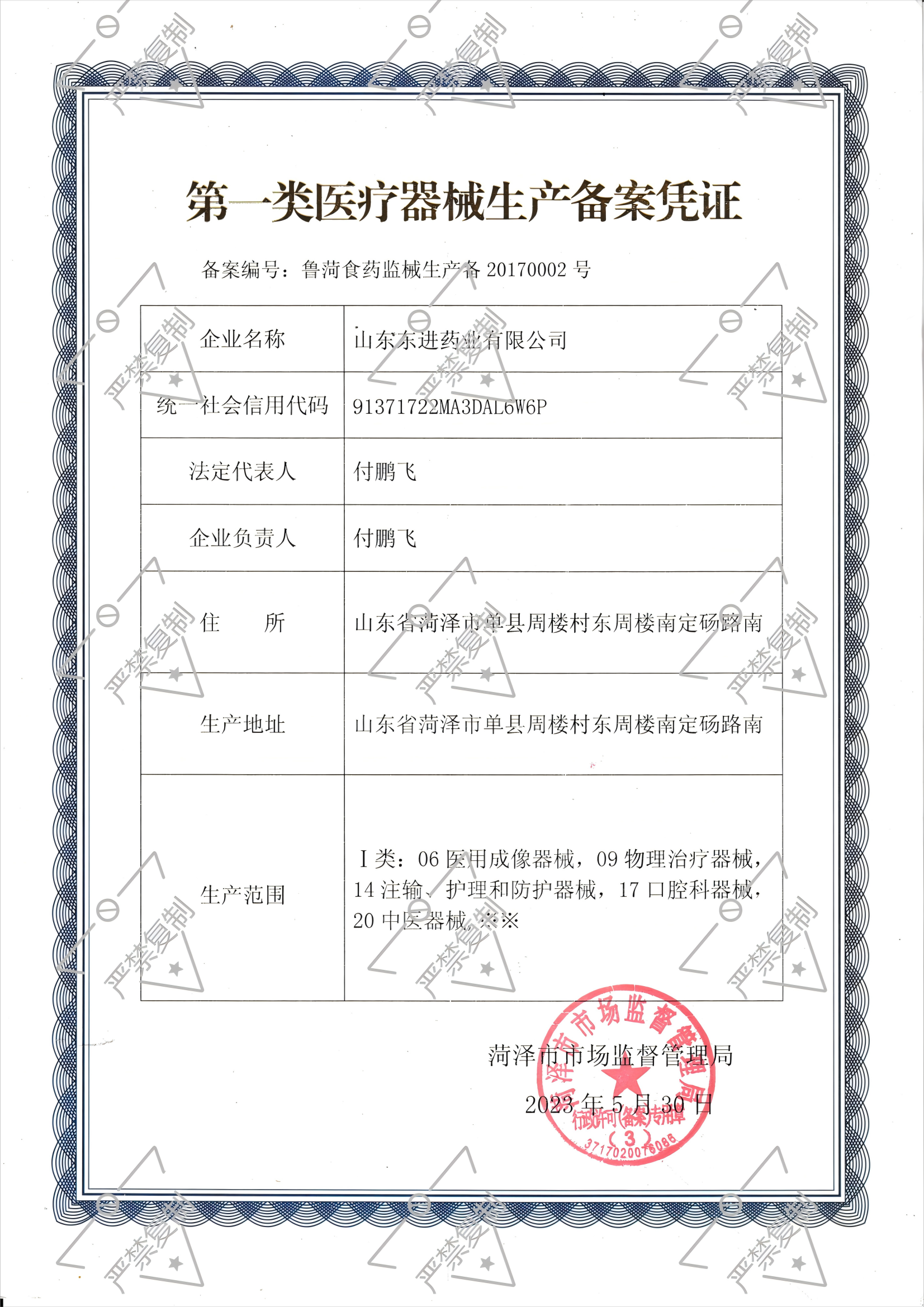 鲁菏食药监械生产备20170002号 |