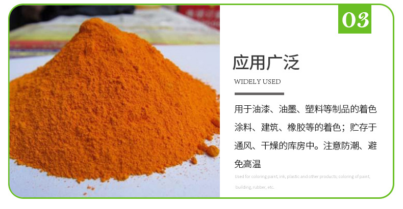 主要用于彩色水泥、彩色水泥地砖、彩色水泥瓦、仿琉璃瓦、混凝土地砖、彩色灰浆 |