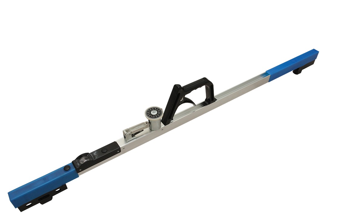 测量轨距时,将轨距尺两端的搭轨座分别搭在两股钢轨上,搬动扳手,使两端的测头与钢轨工作边接触,通过放大镜即可读出轨距示值。