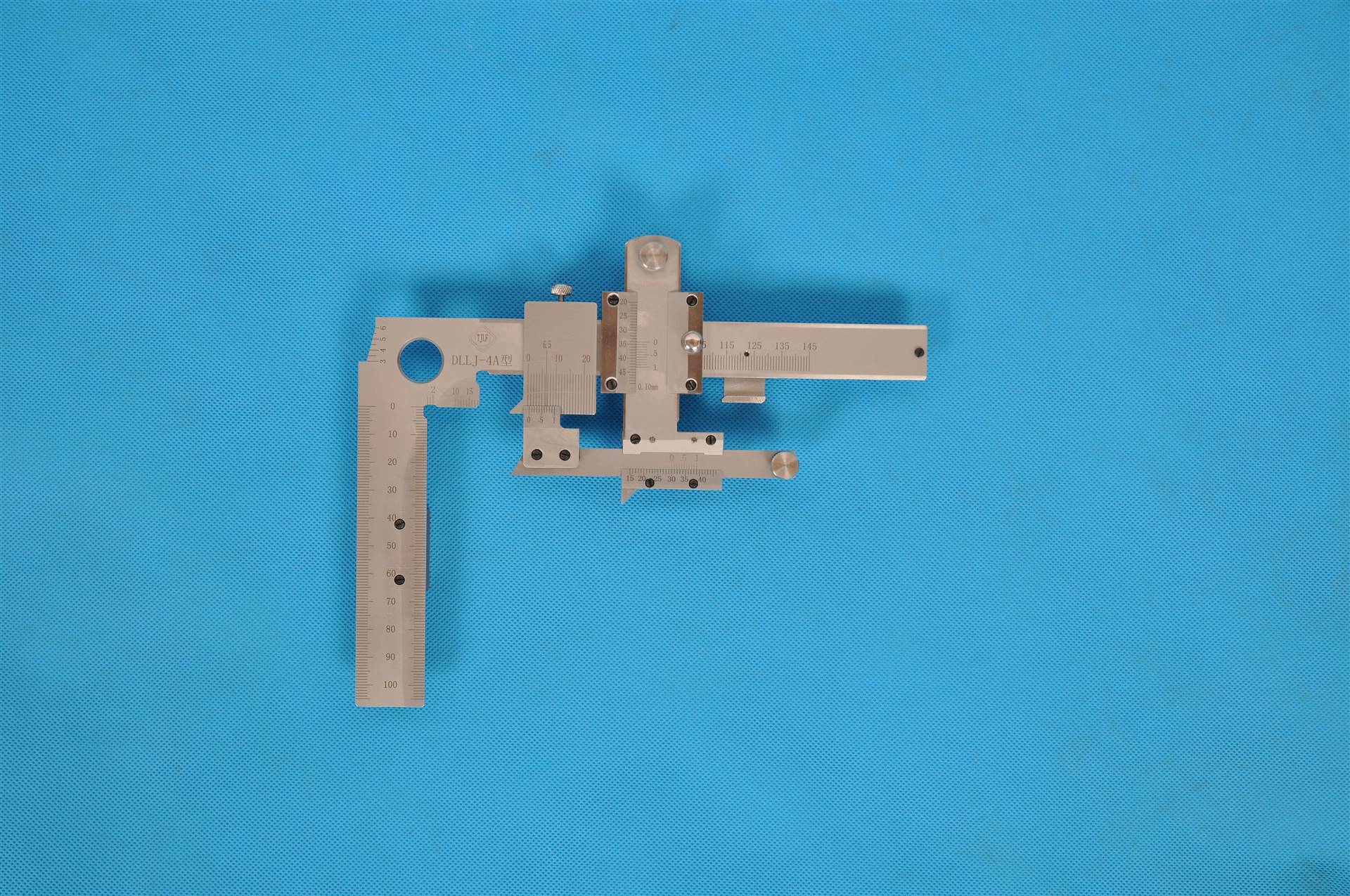 1、移动轮辋宽度测尺尺框,使定位销落入销孔内,然后锁紧其锁紧螺钉。