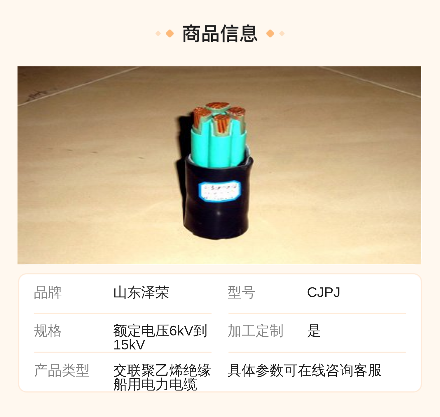 交联聚乙烯绝缘船用电力电缆 |