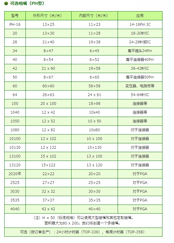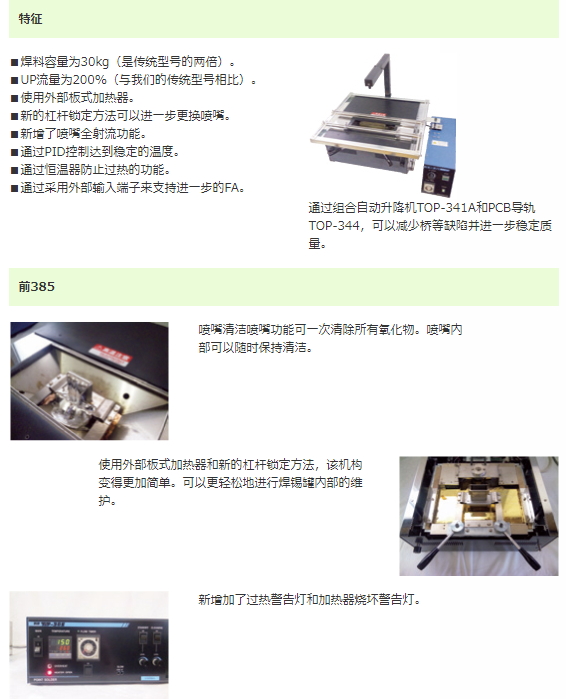 | 选项 | 自动升降机TOP-341A,PCB导轨TOP-344,N 2喷嘴,N 2发生器SLN-05M |