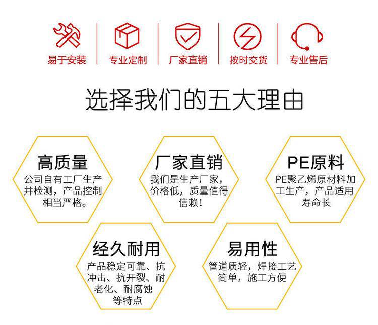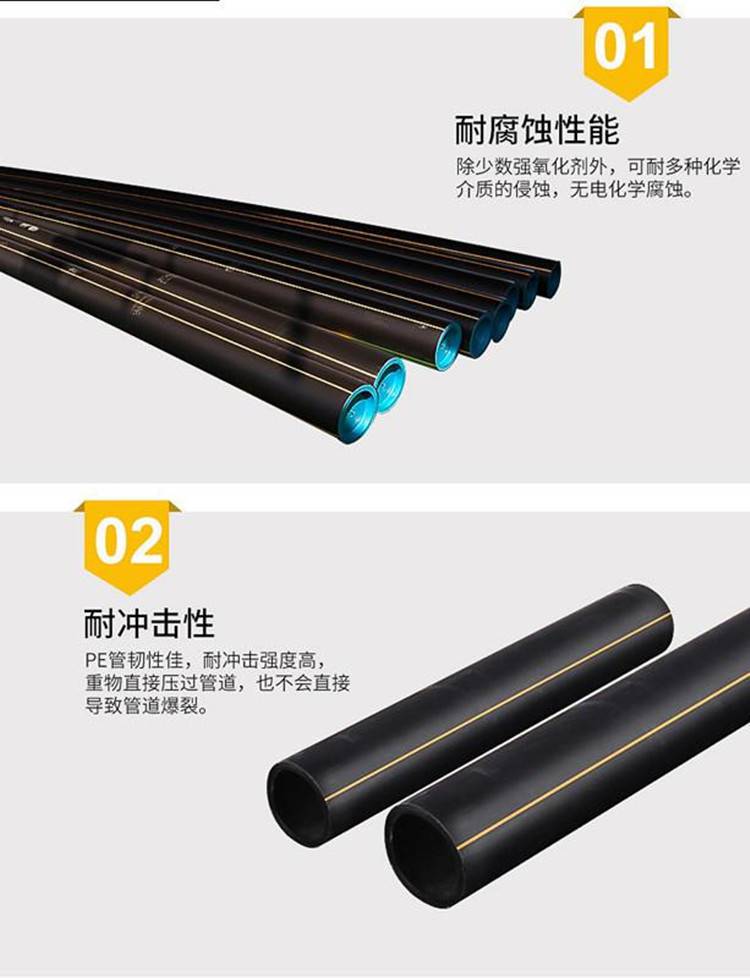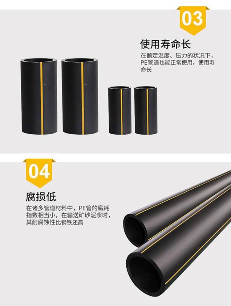 润星煤层气聚乙烯管道 250天然气PE管 平顶山HDPE燃气管 全新料生产,PE管的市政管材市场,塑料管道正在稳步发展,PE管、PP-R管、UPVC管都占有一席之地,其中PE管强劲的发展势头最为令人瞩目。PE管的使用领域广泛。其中给水管和燃气管是其两个的应用市场。PE树脂,是由单体乙烯聚合而成,由于在聚合时因压力、温度等聚合反应条件不同,可得出不同密度的树脂,因而又有高密度聚乙烯、中密度聚乙烯和低密度聚乙烯之分。在加工不同类型PE管材时,根据其应用条件的不同,选用相应的树脂牌号,同时对挤出机和模具的要求也有所不同。PE燃气管执行标准:GB 15558.1-2015。