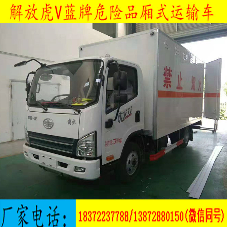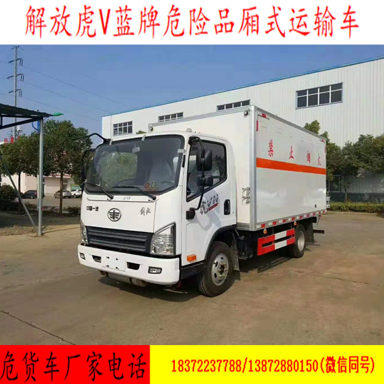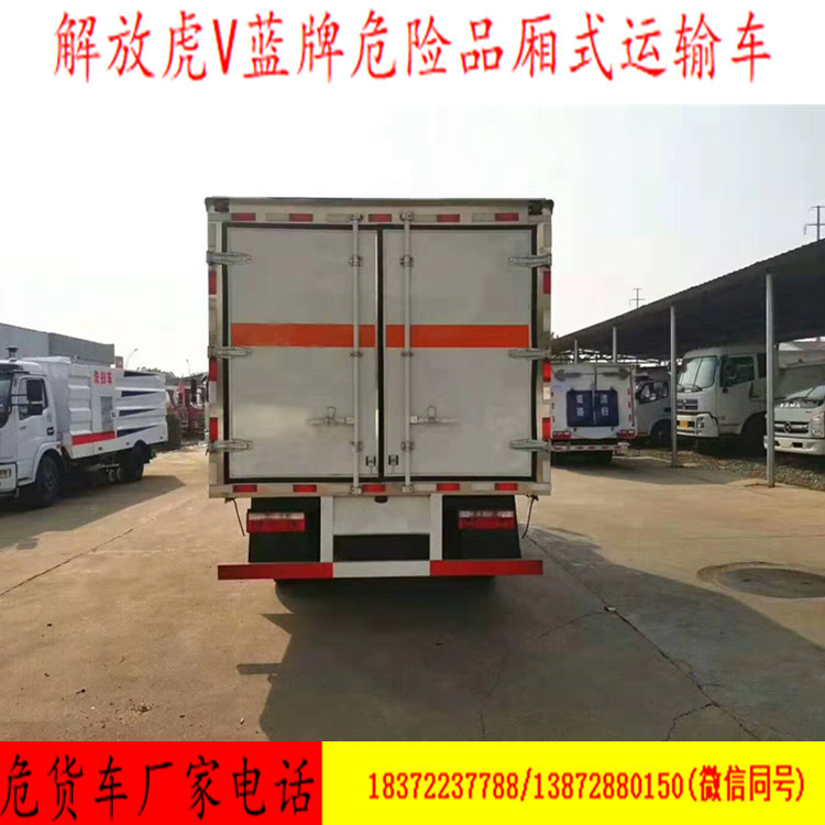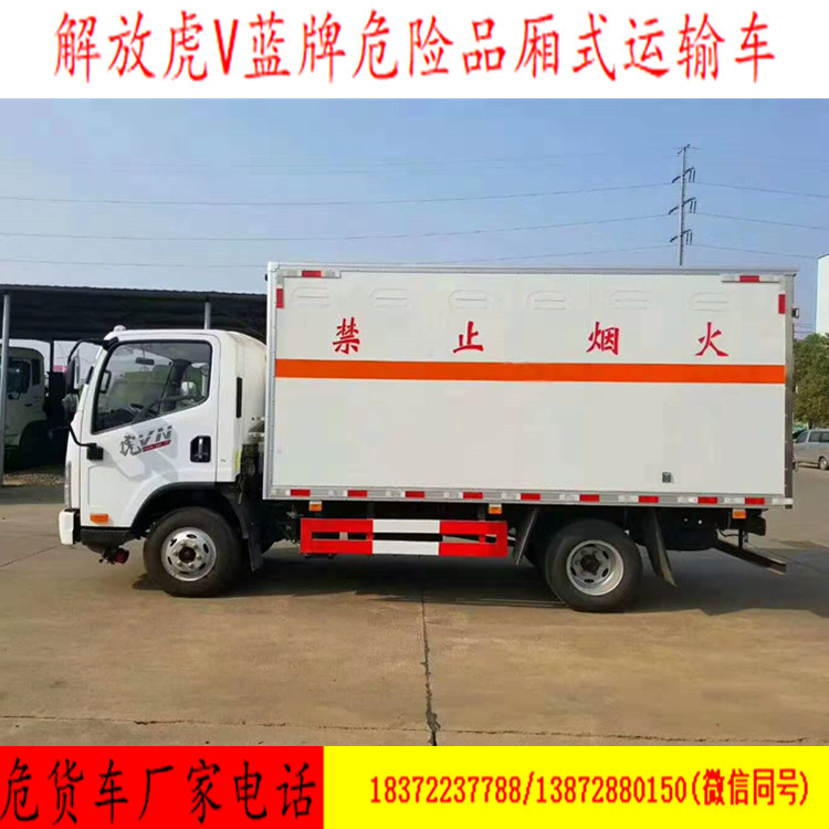 我厂危险品专用运输车国五/国六公告车型齐全,可以用户不同需求的规格要求,运输车可上蓝牌和黄牌,整车原厂国五/国六危险品车手续,用户朋友们不用担心上户的问题!同时我司已与各地公司进行合作,协助客户!今天为您推荐的是解放虎V杂项危险品车
