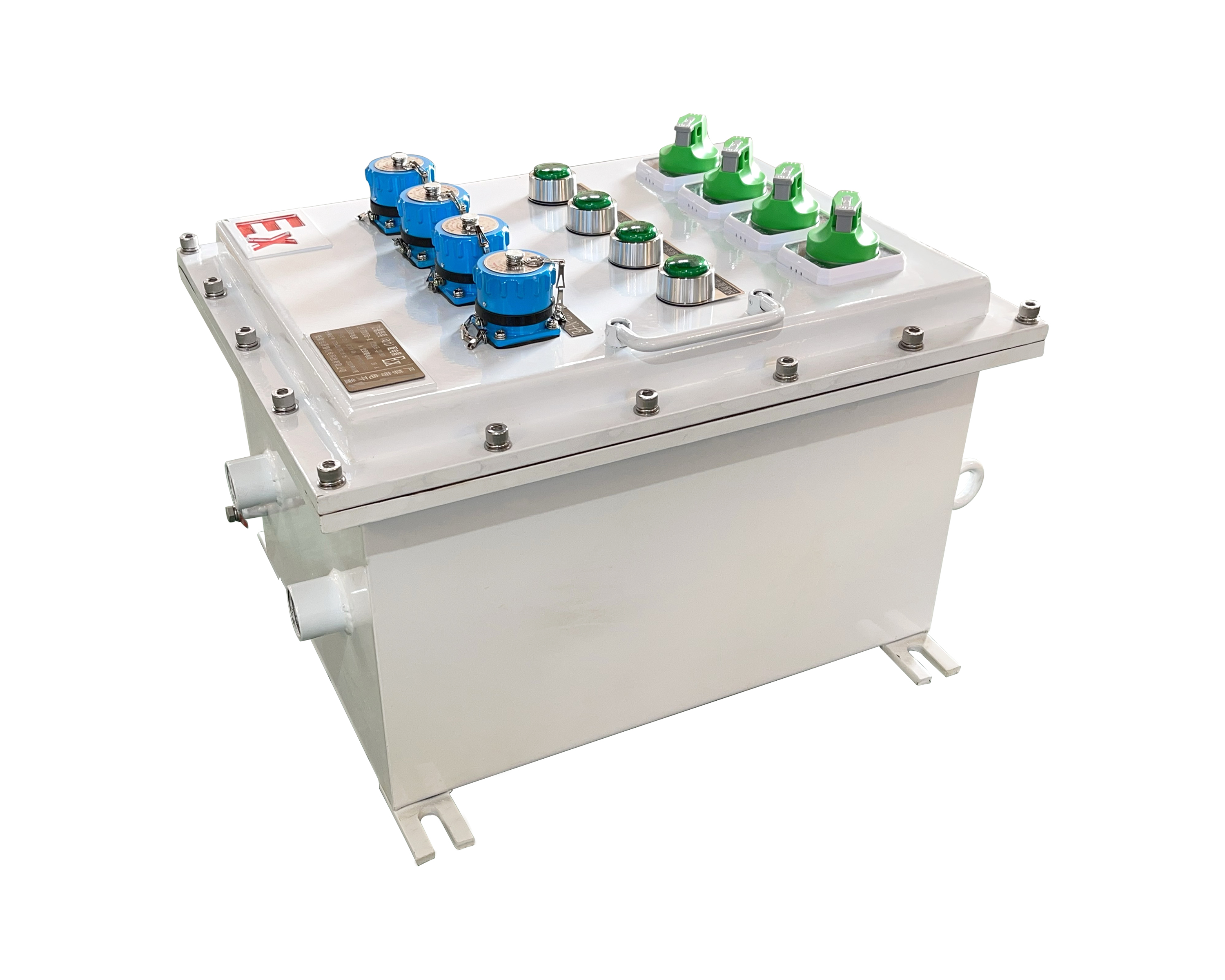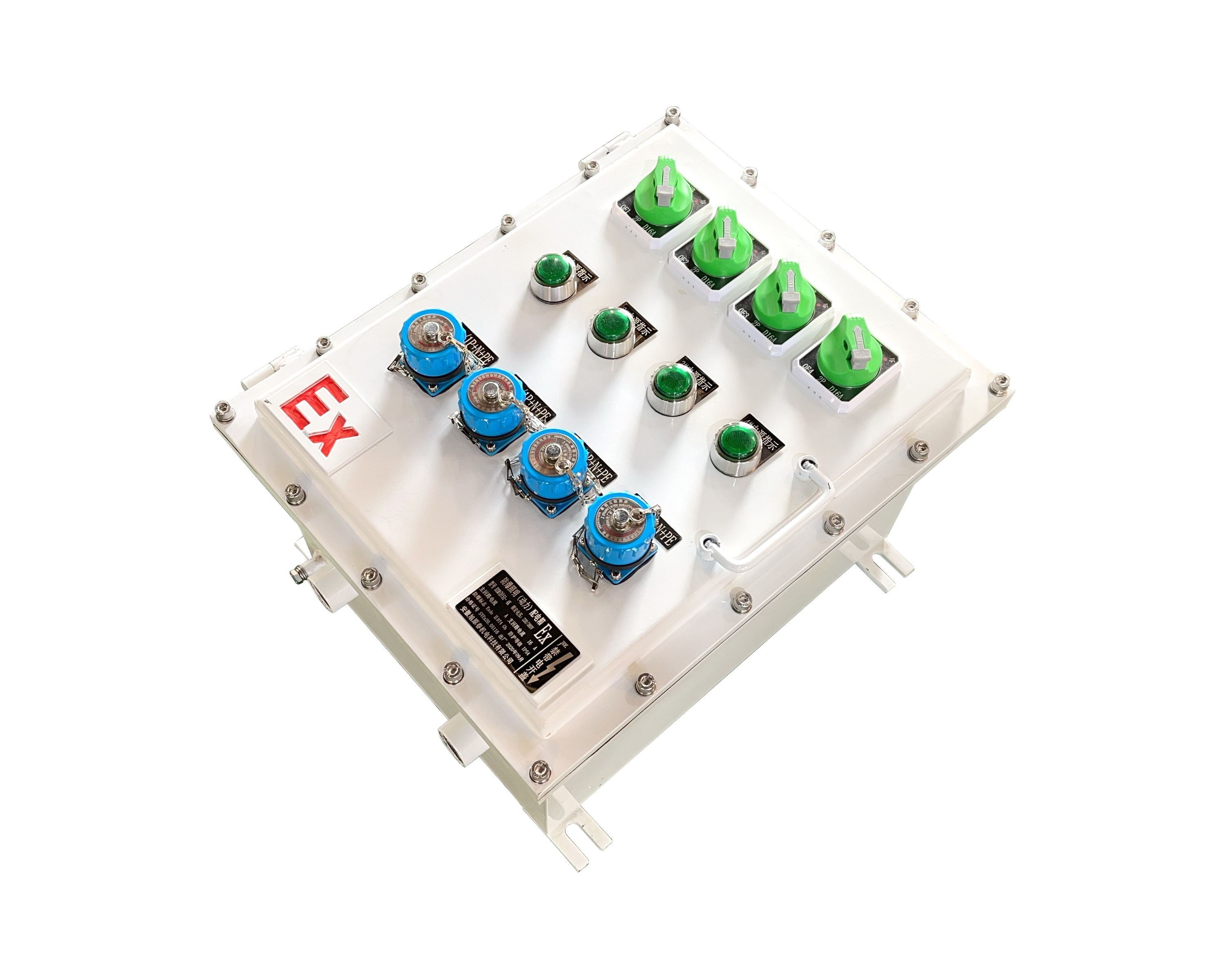 防爆配电箱是集中安装开关、仪表等设备,能防止因火花、电弧、高温等引发安装地点爆炸的重要成套配电装置。目前该装置已成为石油化工等易燃易爆场所中不可或缺的配电设施。按防爆结构形式,防爆电气设备主要分为隔爆型、增安型、本质安全型和正压型等类型。结构主要由箱体和箱盖、母线箱和出线箱、开关旋钮、卡槽、高分断小型断路器和传动轴组成。防爆配电箱由于使用环境恶劣,尤其户外安装的配电箱常年经受日晒雨淋,故箱体材料多采用铸铝合金。