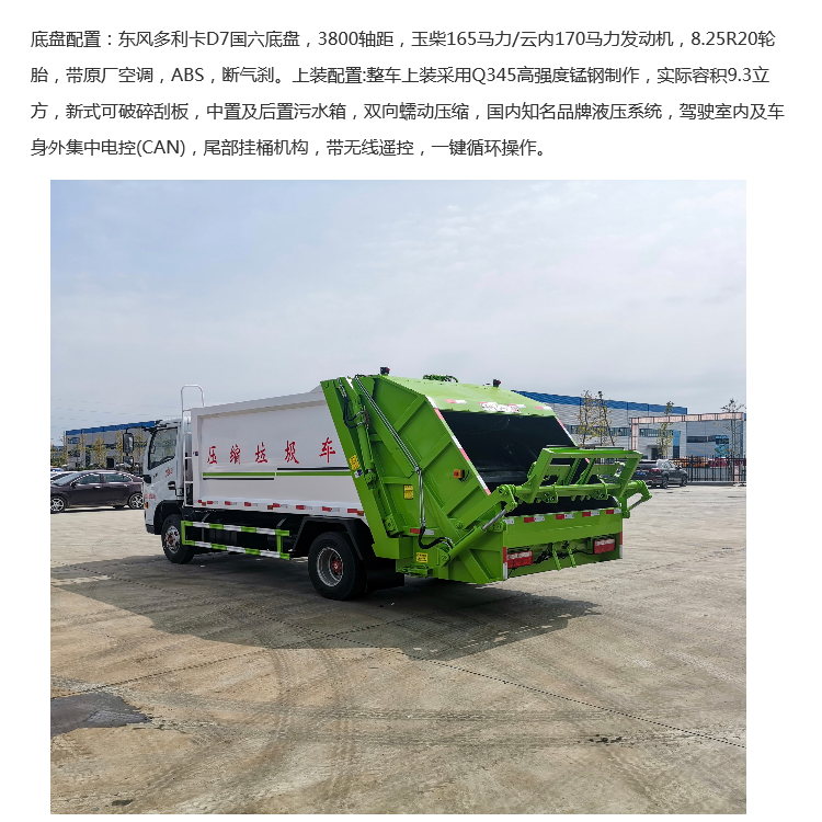 东风多利卡8方压缩垃圾车 工业垃圾车 8吨垃圾清运车带压缩