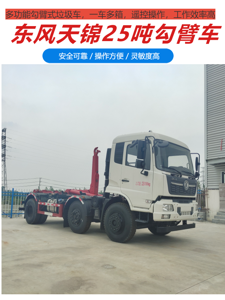东风天锦20吨勾臂式垃圾车 25吨小三轴勾臂车 前四后四勾臂车
