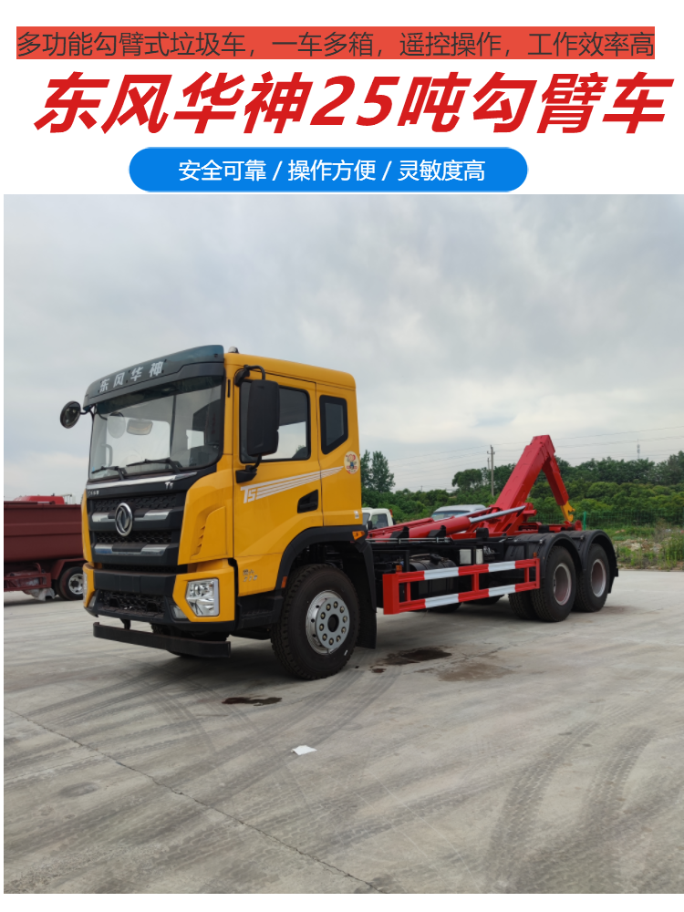 东风华神25吨勾臂式建筑垃圾车 25吨后八轮勾臂车 配套18方压缩箱