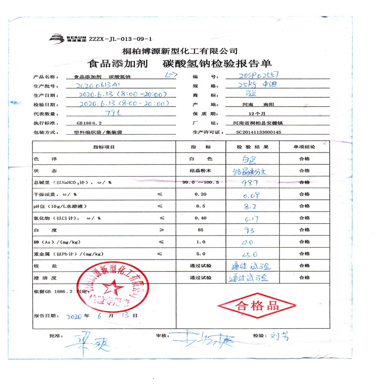 碳酸氢钠为白色晶体,或不透明单斜晶系细微结晶,无臭、味咸,可溶于水,不溶于乙醇。在水中溶解度为7.8g(18℃)、16.0g(60℃)。 小苏打常温下性质稳定,受热易分解