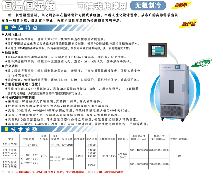 采用镜面不锈钢内胆,四角半圆弧易清洁,箱内搁板间距可调。 ·微电脑温度湿度控制器,控温控湿精度可靠。(可选智能型程序温度控制器) ·采用双层玻璃门观察窗,观察窗方便明了。 ·可选配打印功能,热敏打印机能打印设定参数和描出温度变化曲线。