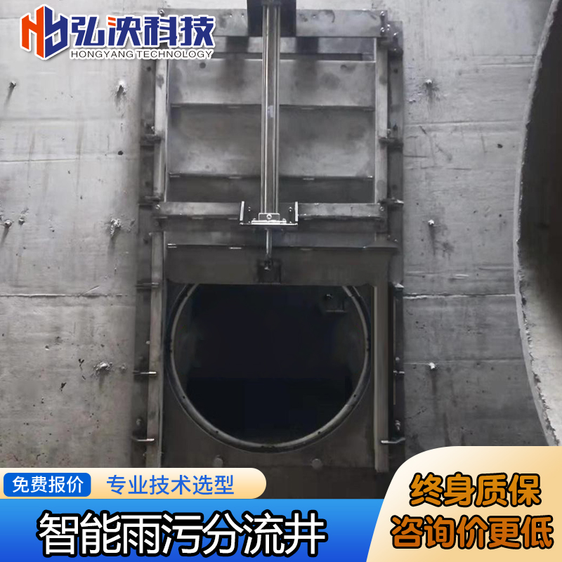 目前市场上常见的一体化截流井主要是以一体化的形式出现的,随着技术的进步,上海弘泱创造出了液压式截流井和插入式柔性截流井,解决了大口径管道和施工空间有限的问题,液压式截流井的核心部件是旋转堰门和智能液压平板闸,主要适用于大口径截流井装置,内部靠雨量计进行检测水位变化,由控制器进行控制闸门的打开,确保井体内部水位达到设定值。液压截流井的旋转堰门上面装有密封条,通过液压控制和来实现截流井的启闭,整个启闭过程密封严实,能够有效防止渗漏。