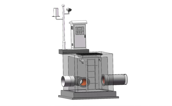 而插入式柔性截流井则是用在安装空间较小的现场内,是将橡胶截流装置安装在管网内部,以此来减少占地空间,能够占用较小的空间,解决城市雨污分流的问题,但是插入式柔性截流井的管道直径较小,适用于管道直径在1米以内的工况,内部也同样含有雨量计来实时监测井内的水位变化,监测数据收集并提供到控制系统内进行控制截流阀的启闭来实现截流目的。