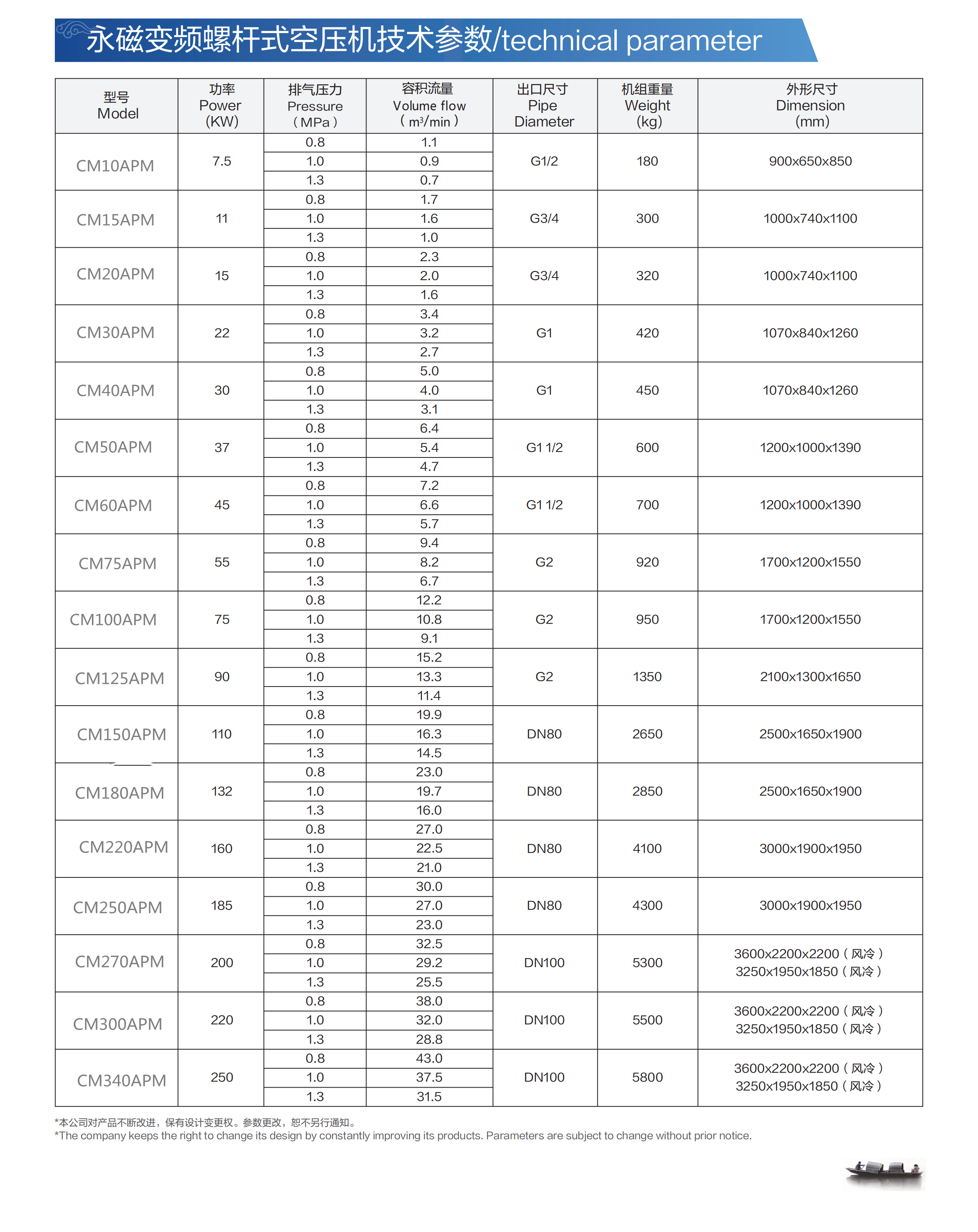 潮曼机械(上海)有限公司,销售螺杆式空压机,无油螺杆空压机、直连式螺杆空压机,变频式螺杆空压机,移动式螺杆空压机,固定式螺杆空压机,单螺杆空压机,双螺杆空压机,风冷式空压机,水冷式空压机,空压机油和配件。可广泛用于铁道高速列车、轮船、建筑、水利、工厂、矿山、医药、采矿、仪器仪表、石油、化工等部门和其他行业中以压缩空气为动力的场合,可用于风动工具、气动夹具、自动控制、喷砂、喷漆、充气、吹洗、气体输送等工作中。它具有节能、低振动、可靠性、效率高、低噪声、长寿命、主机无需维护、维护方便等一系列优点,可实行24小时无人看管操作。