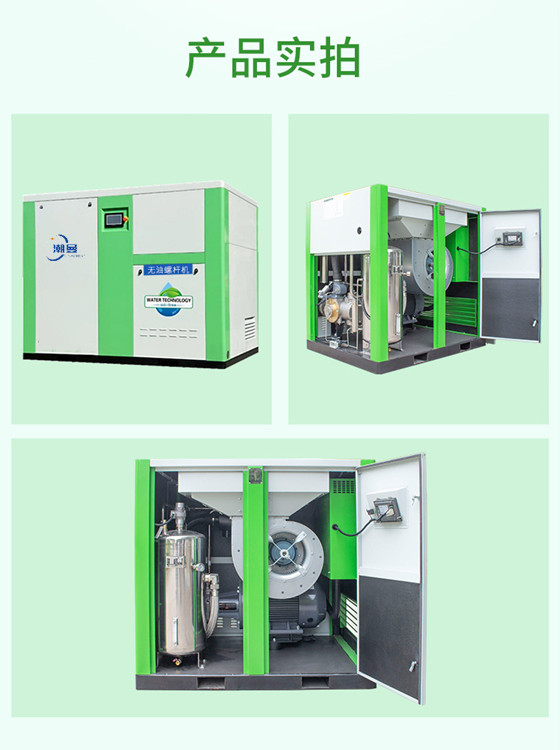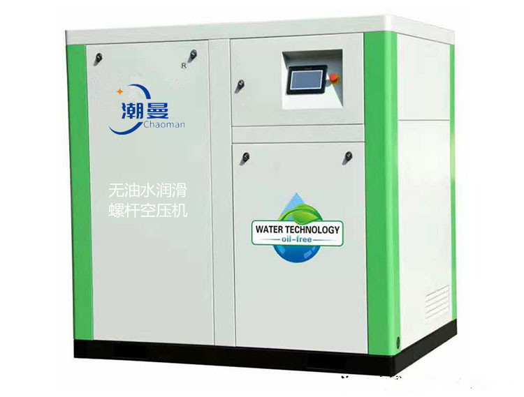 无油水润滑螺杆空压机采用不锈钢螺杆主机,在空气品质、能源节约、运转的高可靠度方面,皆证明其 的技术品质。由于其本身的完美结构,造就了其完对称平衡压缩。用水取代油,实现润滑、冷却、密封、降噪之四大功效,提供之无油空气,无污染,泄放之水无须特殊处理,符合环保要求。
