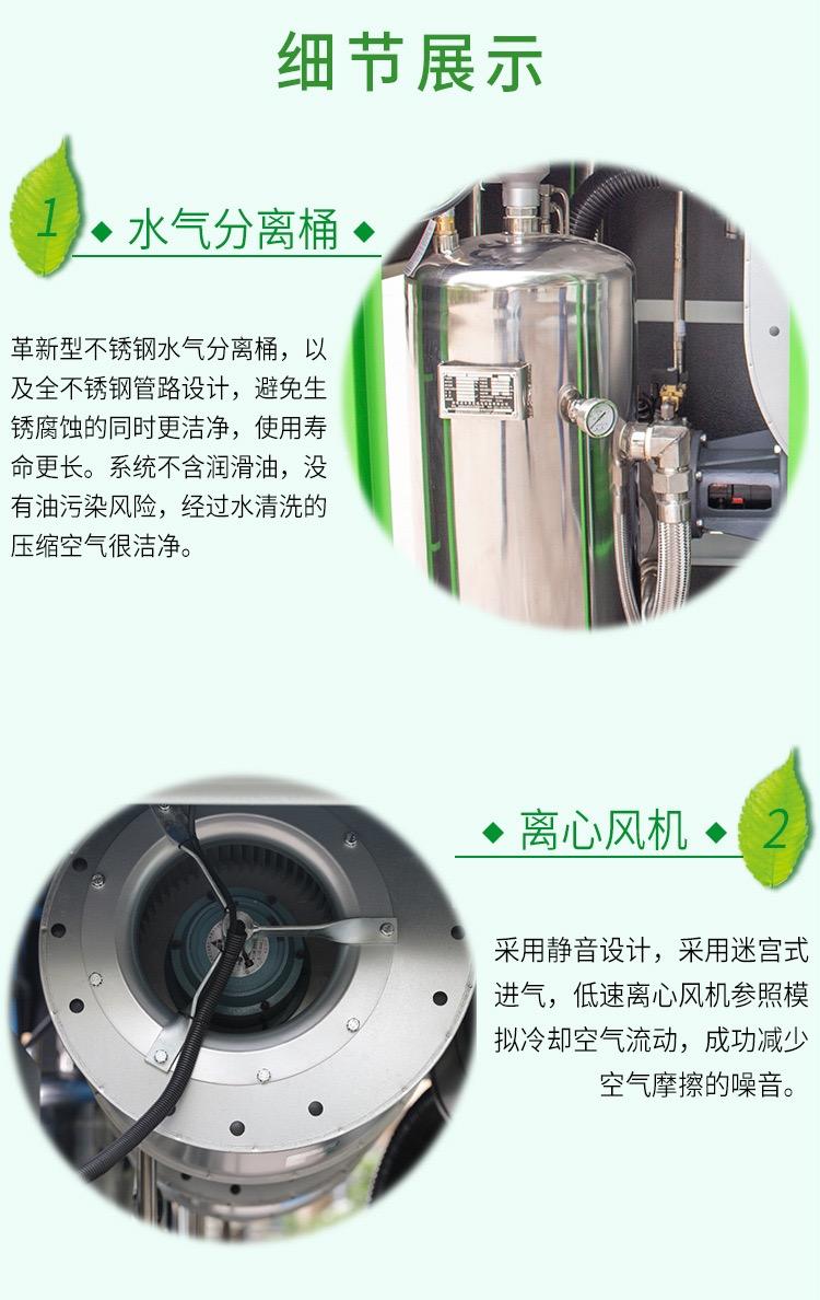 ? 纯净无油,无油污染的压缩系统,低噪音,超节能。