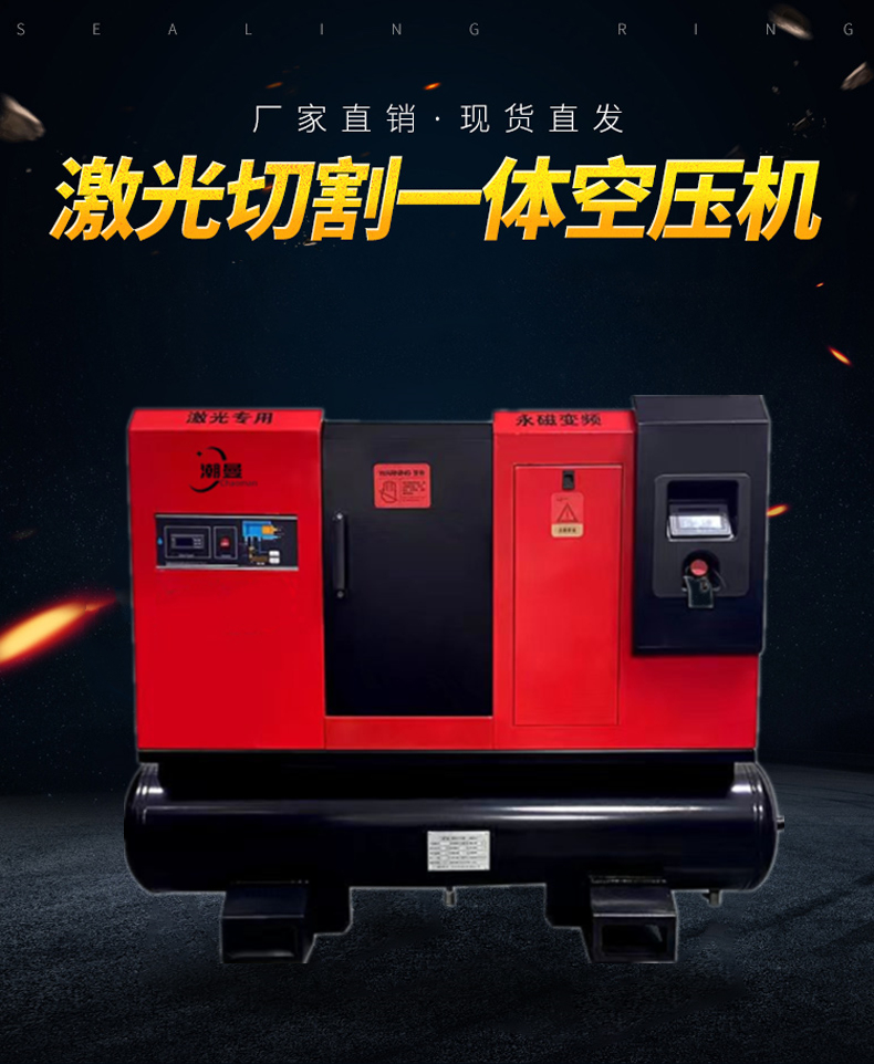 潮曼一体式激光切割专用永磁变频螺杆空压机,整机采用永磁变频空压机,储气罐,冷干机,5支精密过滤器,四组合一体组合,整机具有占地空间小、噪音小、安装方便,节能等特点。目前激光切割行业由于原材成本人工成本的增加,但是成品价格呈下降趋势,企业为了生存,为了节约切割所需氮气氧气的成本,在保证切割产品效果的前提下,企业选择了压缩空气,通过配套选用潮曼激光切割一体式永磁螺杆空压机16公斤的压缩空气来达到切割从而达到理想的效果。