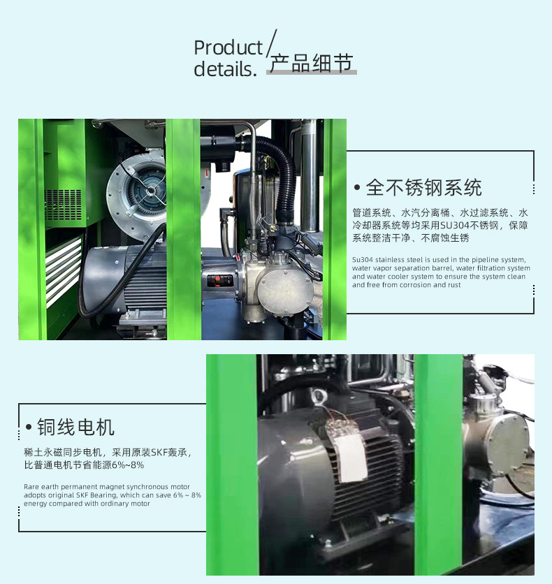 无油水润滑空压机 变频螺杆压缩机3立方22千瓦