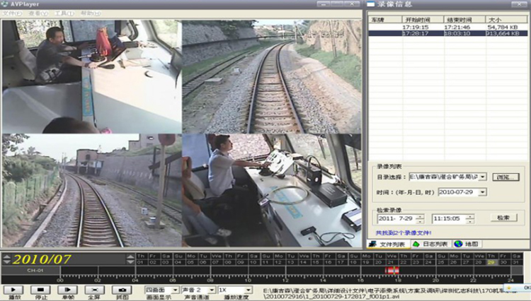 系统可以实现24小时不间断的对机车进行驾驶室内录像、机车前后方录像、机车驾驶室录音等,检查者或领导可以随时调阅录像查看机车司机作业情况。