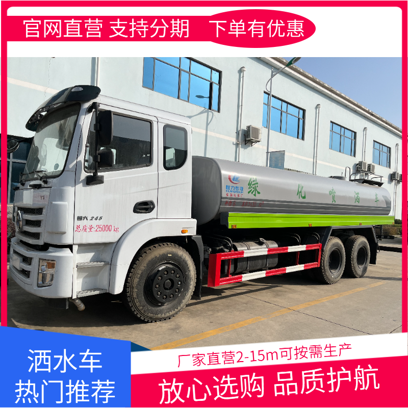 全地形适应:四驱底盘+高离地间隙(≥350mm),通过性极强,可应对山区、沙漠、泥泞道路等复杂地形,满足偏远地区作业需求。一车多用:集成高压清洗(压力≥16MPa)、绿化喷洒、应急消防功能,喷头可360°旋转调节,支持柱状/雾状模式切换,覆盖范围达20米。长效续航:水箱容积15立方米,搭载大功率柴油发动机,续航里程超250公里,支持连续8小时作业,减少频繁补水停工。