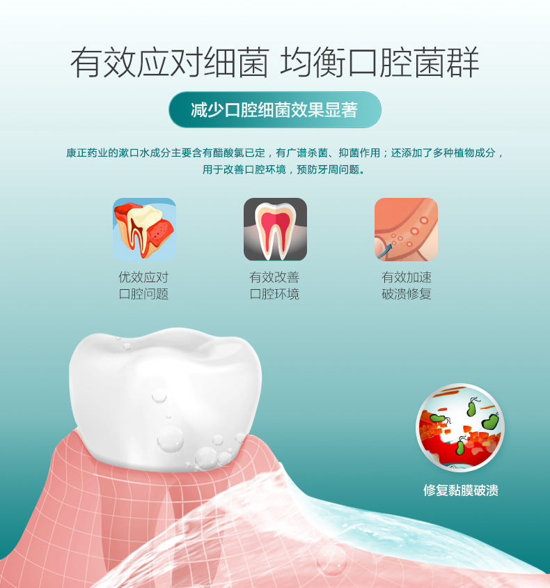 康正药业薄荷劲爽漱口水250ml男女口气牙渍清新除异味 消字号加工针对消费者个性化诉求,河北康正药业不仅带来基础清洁、牙龈护理、健康防蛀、亮白去渍等功效上多元化的解决方案,依托品牌强劲的研发实力,河北康正药业还就儿童、女性、吸烟人士等特向人群量口定制,先后带来多款全球的漱口水及口腔喷雾系列产品。为满足消费者更、更个性化的洁齿诉求,提升吸烟人士的口腔健康护理意识及口腔健康水平,河北康正药业重磅推出口腔清洁护理产品——漱口水及口腔喷雾,以有效对抗烟后口臭、烟渍牙黄以及牙龈保护等三大烟后口腔健康问题。