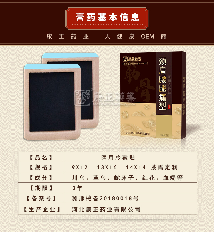 膏药代加工黑膏药贴牌颈椎贴,河北康正药业械字号工厂