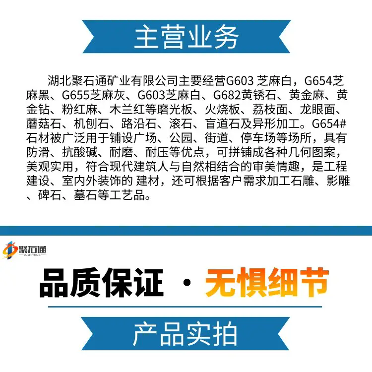 芝麻白、芝麻灰、芝麻黑、黄金麻、路沿石、pc砖地铺石、异型石材加工