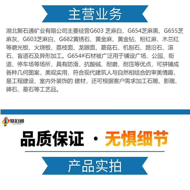 芝麻白、芝麻灰、芝麻黑、黄金麻、路沿石、pc砖地铺石、异型石材加工