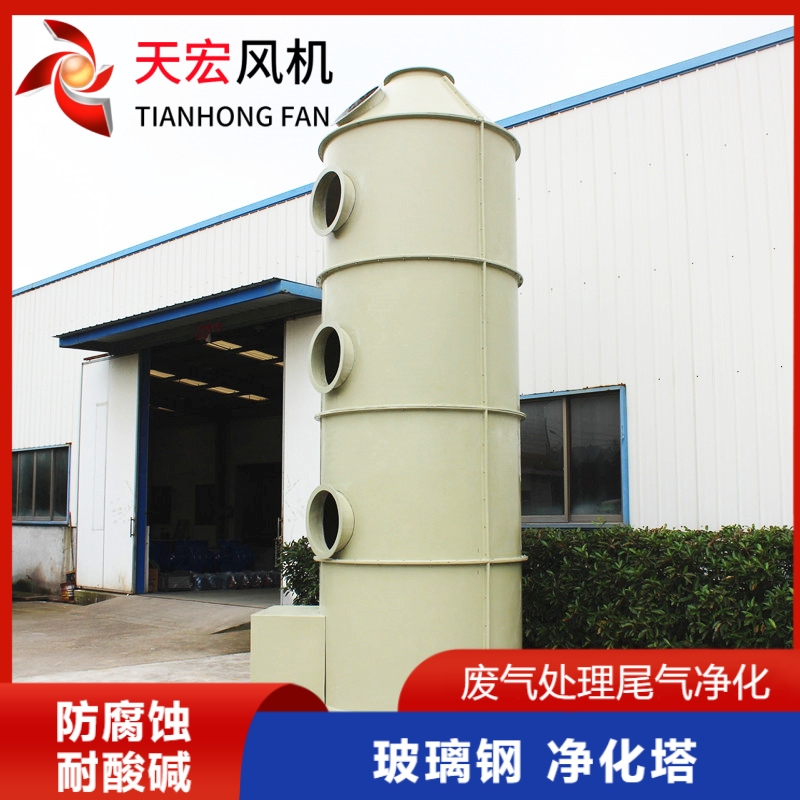 绍兴天宏风机有限公司生产FRP玻璃钢喷淋塔,规格直径600MM-30000MM模具齐全,是净化、雾及氮氧化物废气的新型净化设备,玻璃钢喷淋塔具有净化效率高,结构紧凑,占地面积小,耐腐蚀、耐老化性能好,重量轻,便于安装、运输,管理、维修等特点。天宏风机生产的玻璃钢喷淋塔采用组合式模具,可以到现场组装。