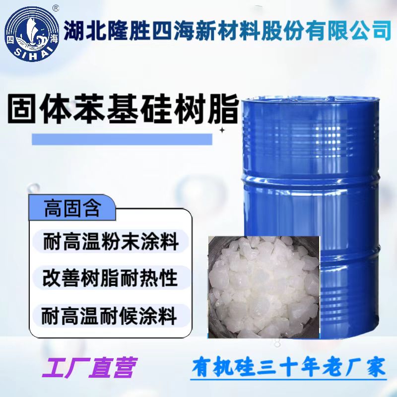 固体硅树脂 一、性能及用途本品是一种含有硅羟基的苯基丙基有机硅树脂中间体,具有良好的相容性与高反应活性,可以与丙烯酸、聚酯、环氧复配并参与交联固化反应;通过复配或者聚合改性的方式引入有机硅中间体,可以明显的改善有机树脂耐候性能,尤其是抗粉化、抗开裂,赋予户外工业漆的保光保色性;通过复配或者聚合改性的方式引入有机硅中间体,还可以明显改善有机树脂的耐热性能,如 30%有机硅中间体的引入即可将有机树脂的持续耐热性提升到 300-350℃;该有机硅树脂中间体以固体形式出售,还可以直接或者复配应用到耐热、耐候性粉末涂料中。 二、主要技术指标项 目 指 标 试验方法外 观 无色至淡黄色,透明,固体 GB1721挥发分 (150℃, 1h) ≤ 3 %软化点 (℃) 35-45 GB/T12007.6-1989中的溶解性(1:1) 清澈透明三、推荐应用1、广泛应用于粉末涂料行业,参与聚酯、环氧、丙烯酸的交联固化反应,提搞涂层的耐热性和耐候性能,并且对涂层重涂性影响较其它固体硅树脂小;2、广泛应用于耐热工业涂料,一般可以通过复配的方式直接添加,添加比例不同对于耐温性能的影响最为关键,一般建议引入量≥15%(以有效固含计算);如能通过聚合接枝的方式引入,则能进一步提供更加均衡的性能;3、广泛应用耐候性聚硅氧烷涂料,同通过与有机树脂的搭配,赋予涂层耐候性和耐盐雾性能的兼具,符合《HG/T 4755-2014 聚硅氧烷涂料》标准;四、包装及贮运一般为 50kg, 25kg 塑料内衬纸桶包装,在 5~25℃阴凉干燥环境下密封储存,相应保质期一般为自生产之日起 12 个月(超期分析合格仍可使用)。 五、施工参考复配使用本品时,可以直接加入或先以溶剂溶解再加入到有机树脂中以配制涂料;接枝改性使用时,应以玻璃片测试方法测试其反应进程,以确保接枝充分;用作粉末涂料时则可以按照一般粉末涂料操作流程进行。