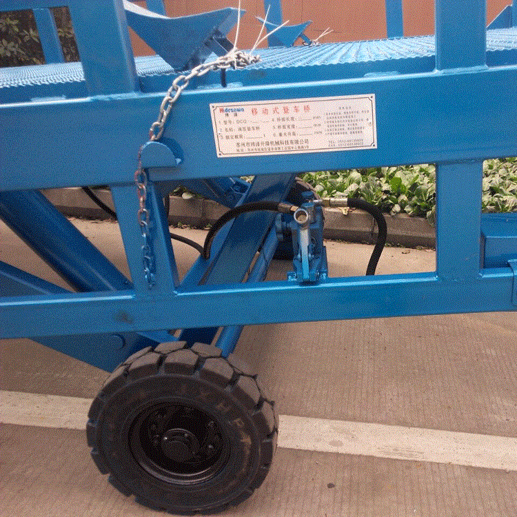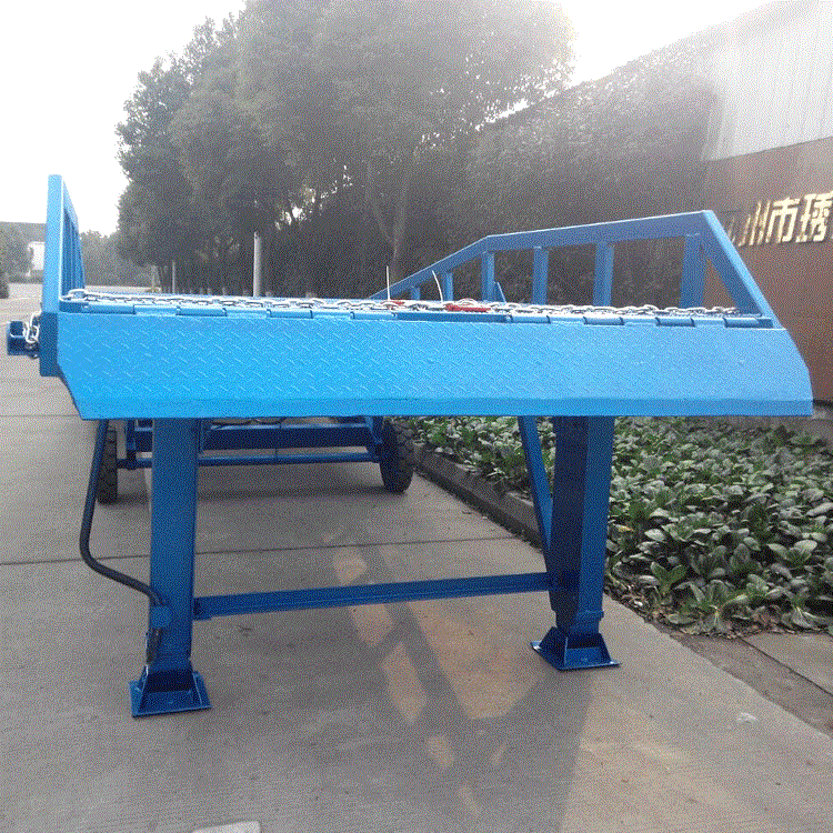 移动式登车桥是与叉车配合使用的货物装卸专用辅助设备,有了它,叉车能直接从地面使人汽车车厢内部进行批量装卸作业,产品采用人工液压动力,不需再接动力电源,只需单人操作,即可实物的安全快速装卸,它可以使企业减少大量劳动力,成倍提高装卸作业效率,加快货物流通速度,让使用公司获取更大的经济效益。