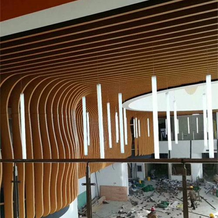 按照目前的工艺技术一般上是通过组合搭配得到各种弧形铝方通吊顶,可以使用同一规格弧形铝方通吊顶用不同的长度搭配安装得到简单点的弧形铝方通吊顶,另外也可以采用弧形铝方通吊顶和常规铝方通进行组合安装得到别致点的弧形铝方通吊顶,一般上木纹的波浪铝方通吊顶组合起来的系统得到的造型铝方通会比较美观而风格。线条飘逸,弧形铝方通的层次分明,就像春天里湖边的杨柳一样柔美,没有过多的装饰,简单明了,体现了现代的装饰吊顶风格,设计方案更加是各式各样,任意由设计师想象,可以一高一低,一疏一密,多种规格多种颜色混合搭配,效果更加。