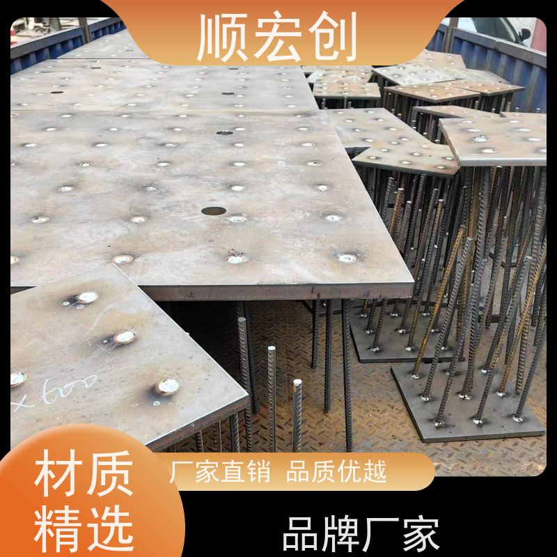 预埋件通常由锚板和锚筋组成,锚板多为钢板,锚筋采用热轧钢筋或型钢,材质需满足强度及耐久性要求。根据用途可分为幕墙预埋件、管道预埋件、设备基础预埋件等,形状包括平板型、槽型、L型等,以适应不同连接需求。