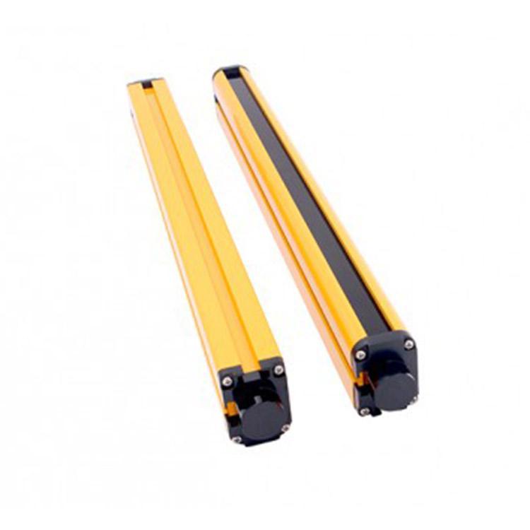 光电保护器工作、控制原理:光电保护器包含发光单元和受光单元,发光器发出多束不可见红外线光,受光器一一对应接收,形成保护光幕。当光幕其中一束或多束红外线光被遮挡时,传感器产生一遮光信号,通过信号电缆传输到控制器,控制器将此信号进行处理,产生一控制信号,控制机床的制动控制回路或其他设备的报警装置,实现机床停车或安全报警。