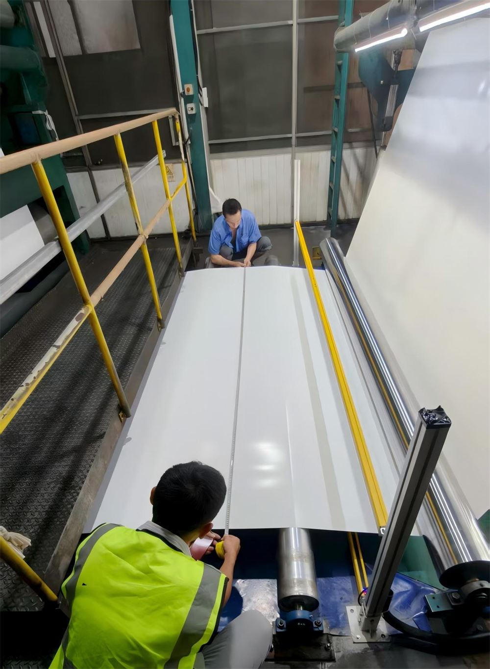 印刷行业应用在线幅宽测量光幕保障纸张尺寸精度。设备