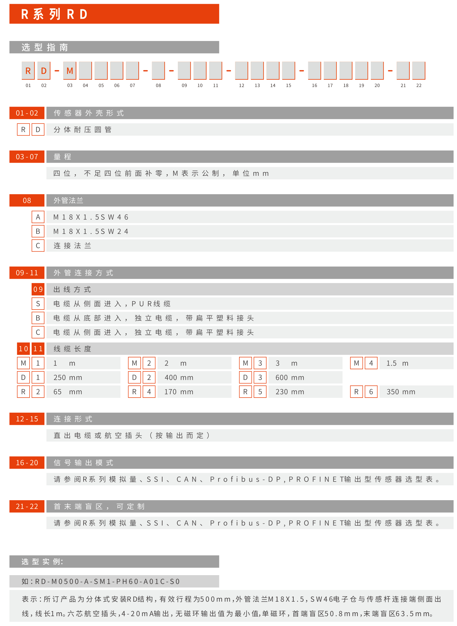 RD分体式磁致伸缩位移传感器选型指南