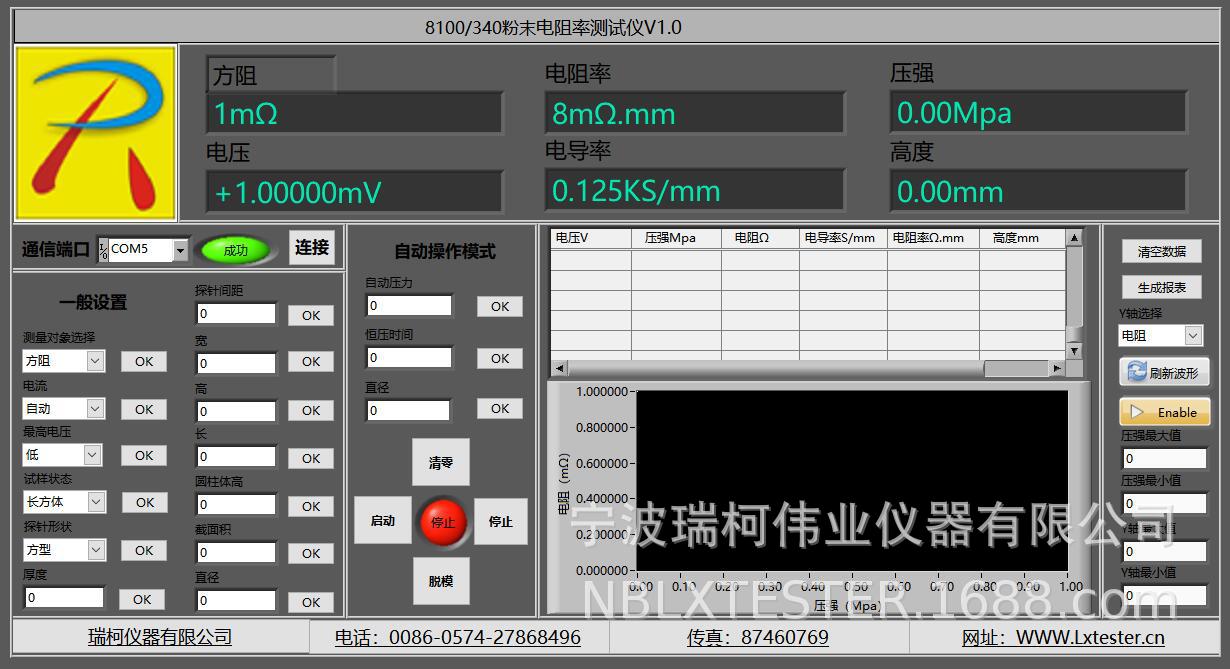 液晶显示:电阻值、电阻率、电导率值、温度、压强值、单位自动换算、横截面、高度,上下限警报
