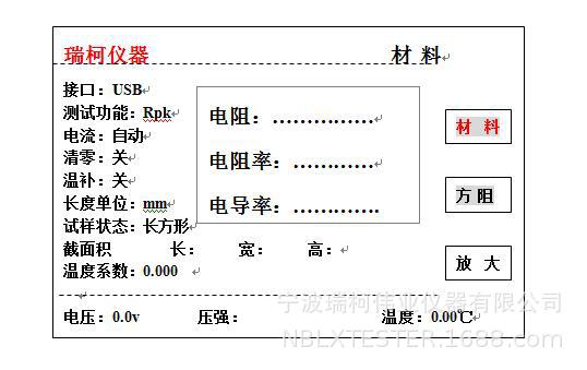 屏液晶显示:电阻、电阻率、方阻、温度、单位换算、温度系数、电流、电压、探针形状、探针间距、厚度、电导率large screen lcd: resistance. resistivity. sheet resistance. temperature. unit conversion.temperature coefficient. current. voltage. probe shape. probe spacing. thickness. conductivity