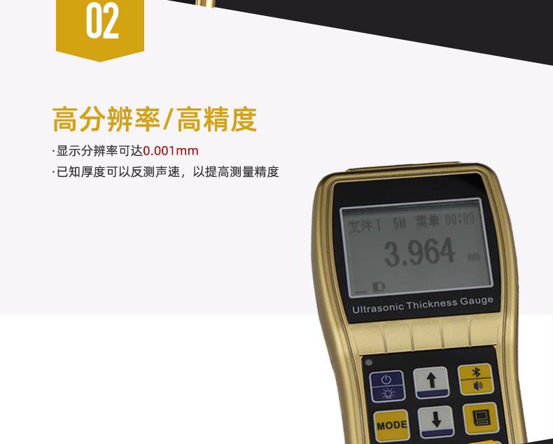 采用“杂波飞渡技术”,一方面可以实现超薄件的测量,小厚度(钢)可达0.15mm;另一方面可以实现高精度测厚,高分辩率可达0.001mm;