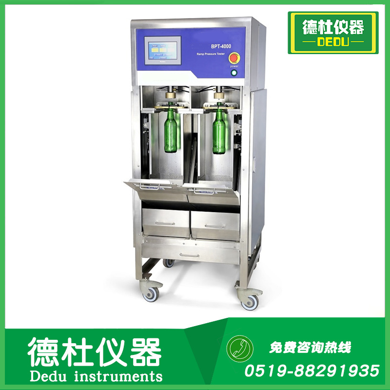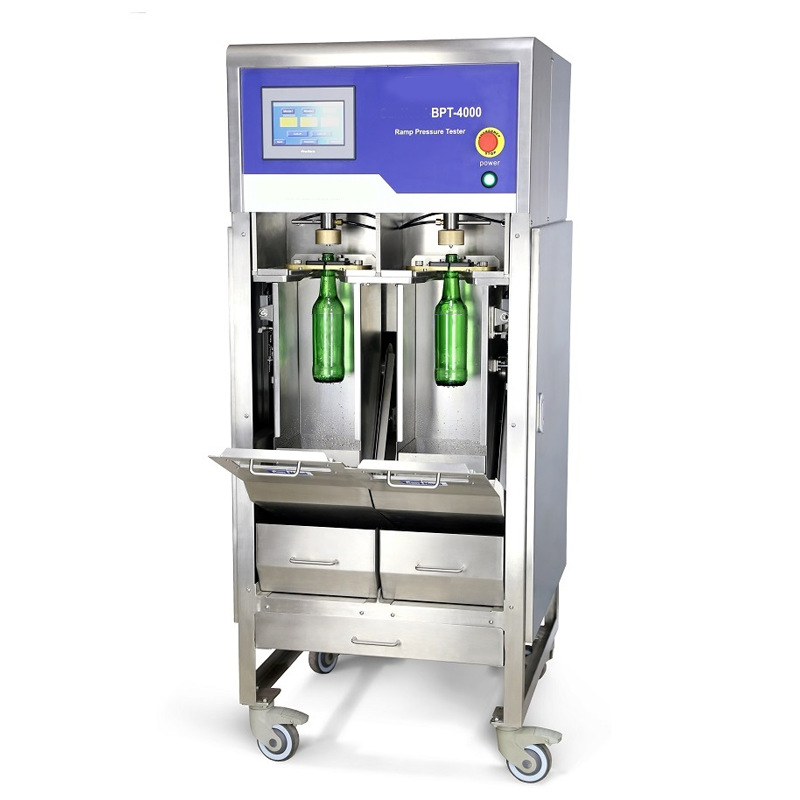 BPT-4000玻璃瓶内压力测试机(自动双工位)”可对玻璃瓶做耐压性能试验。可以做通过性测试,也可做爆破试验。