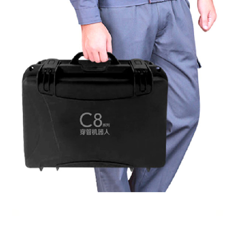 C8系列穿管机器人是一-款用于对弱电线管内部进行远距离观察、检测以及辅助光纤穿管的可视化设备。用户可控制电动摇杆改变探头观测方向,并通过手机屏幕全方位观测弱电线管内部的真实状况。
