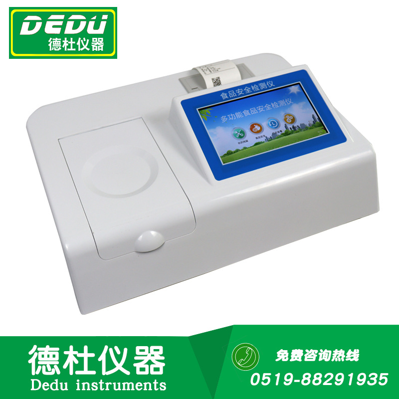 DT-SA04 食品安全检测仪可快速检测各类食品中的jia醛、二氧化硫、亚硝酸盐、吊白块的含量,仪器预留其他项目检测程序和端口,根据日后需求可方便的增加检测项目。该多功能食品安全检测仪为集成化食品安全快速检测分析设备,广泛应用于食药监局、卫生部门、高教院校、科研院所、农业部门、养殖场、屠宰场、食品肉产品深加工企业、检验检疫部门等单位使用。