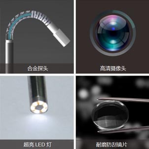 gao端内窥镜配件合金探头、高清摄像头、超亮LED灯、耐磨防刮镜片。