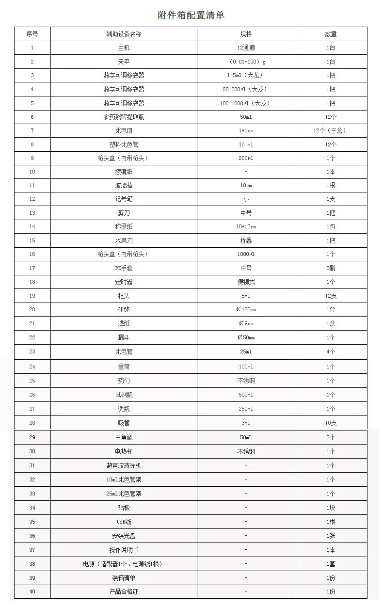 * 农 残: 检出下限:抑制率 5% ,检测范围:抑制率(0~100)%