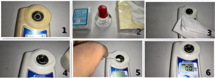 3. 可以先用清水清洁折射仪棱镜。